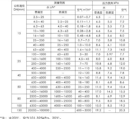 1.測量范圍:水 (20℃ ) 2.5~180000L/h 空氣(20℃ 101325Pa)