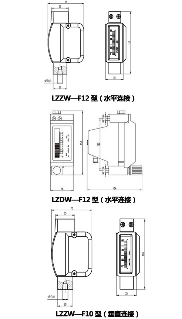 下進上出型:1/4” NPT, 3/8” NPT, 1/2” NPT,3/4” NPT,1” NPT內(nèi)螺紋